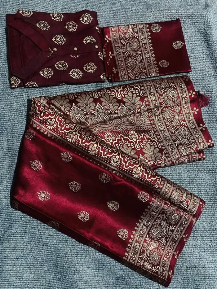 মেরুন কালার শাড়ি+ব্লাউজ+পাঞ্জাবি