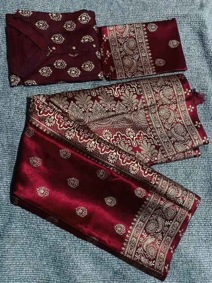 মেরুন কালার শুধু শাড়ি+ব্লাউজ
